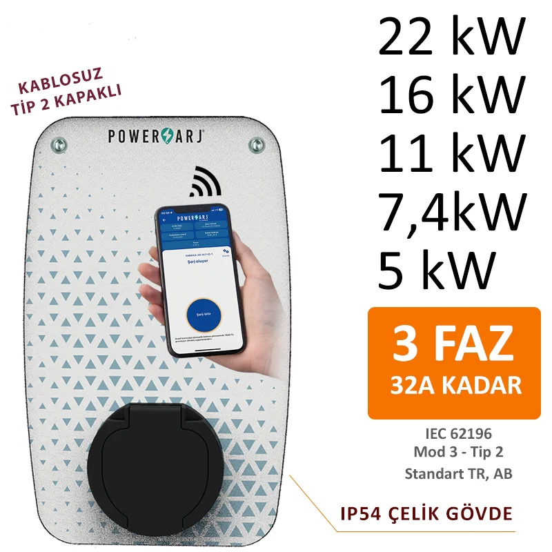 Powerşarj Rapid Link Badic 22KW, 16KW, 11KW, 7,4kw, 5kw, 3,4kw Elektrikli Araç Mobil Şarj Cihazı. Mobil App Üzeri Ayarlanabilir Güç Seçenekleri ile Size Özel Güvenli ve Akıllı Şarj Çözümleri Sunar